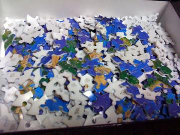 もう結構遅い時間だったので、時間ができた時にすぐに始められるように、とりあえず、海と陸地のピースを分けるのだけやっておこうかな、と分けていると…